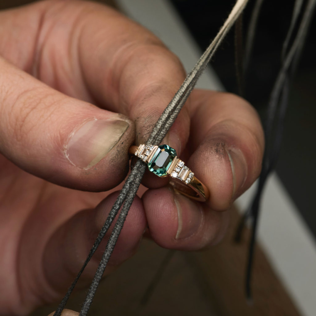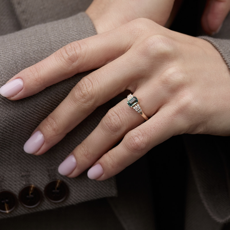 Pierre originaire de Madagascar, le saphir teal présente quelques subtiles nuances de bleus.