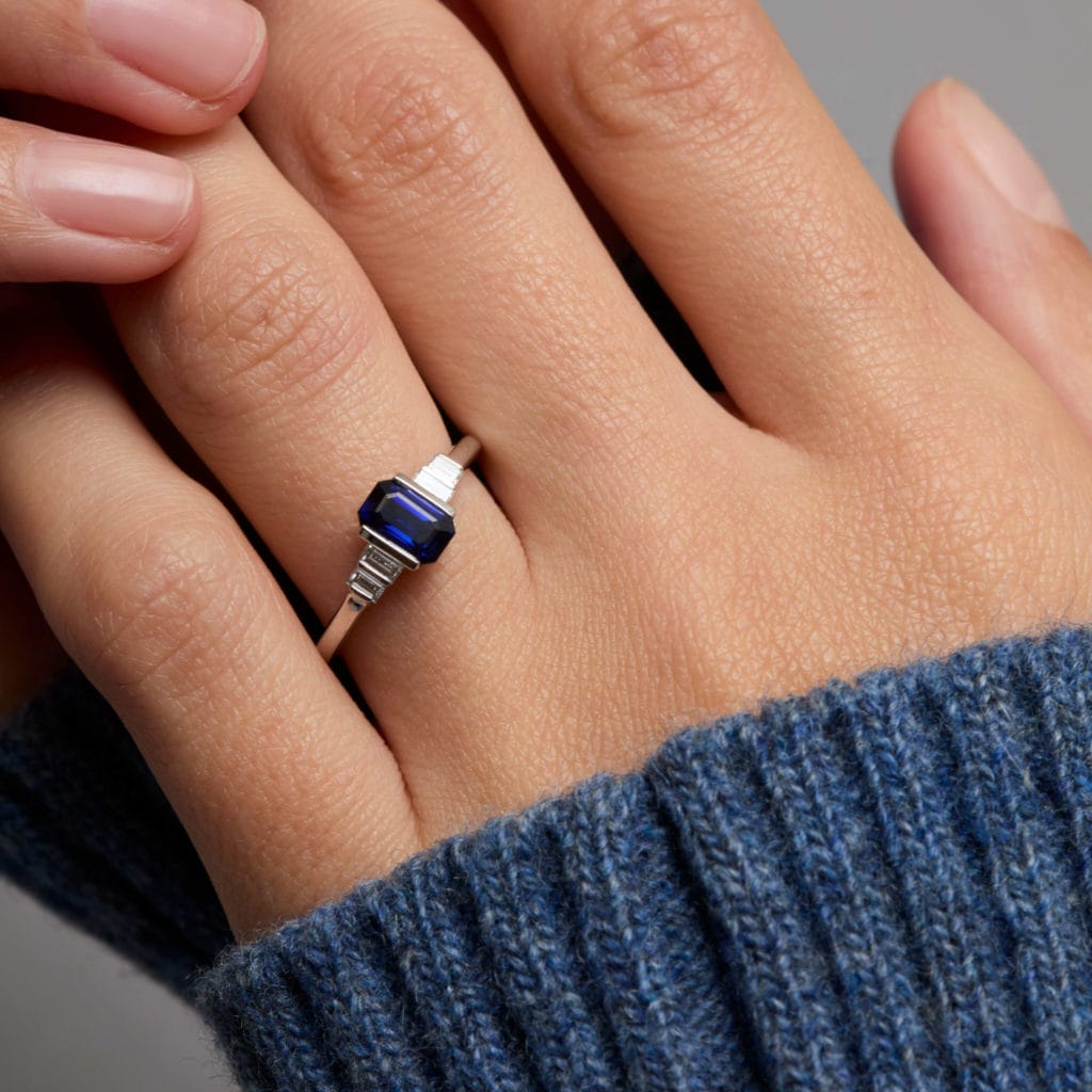 La bague Esmeralda incarne une élégance à la fois unique et intemporelle. L’or blanc s’harmonise parfaitement avec la finesse du Saphir Royal Blue, magnifiquement taillé en émeraude.
