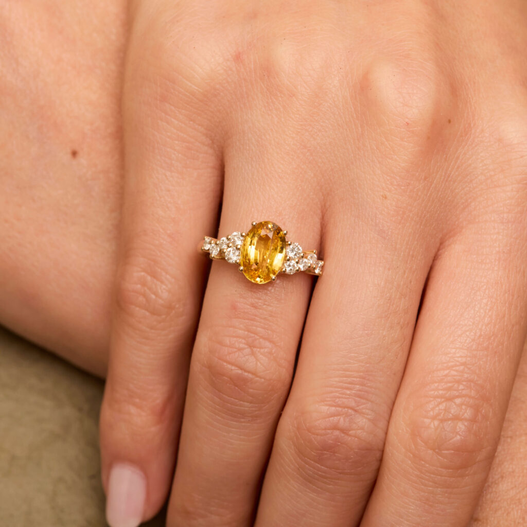 Le saphir jaune est associé à la joie et à la sincérité. Infusé de lumière, le saphir jaune révèle des nuances d’un jaune doux à des teintes or plus soutenues. Incandescente gemme, le saphir jaune se fait sensuel ou solaire pour devenir le reflet de votre féminité.