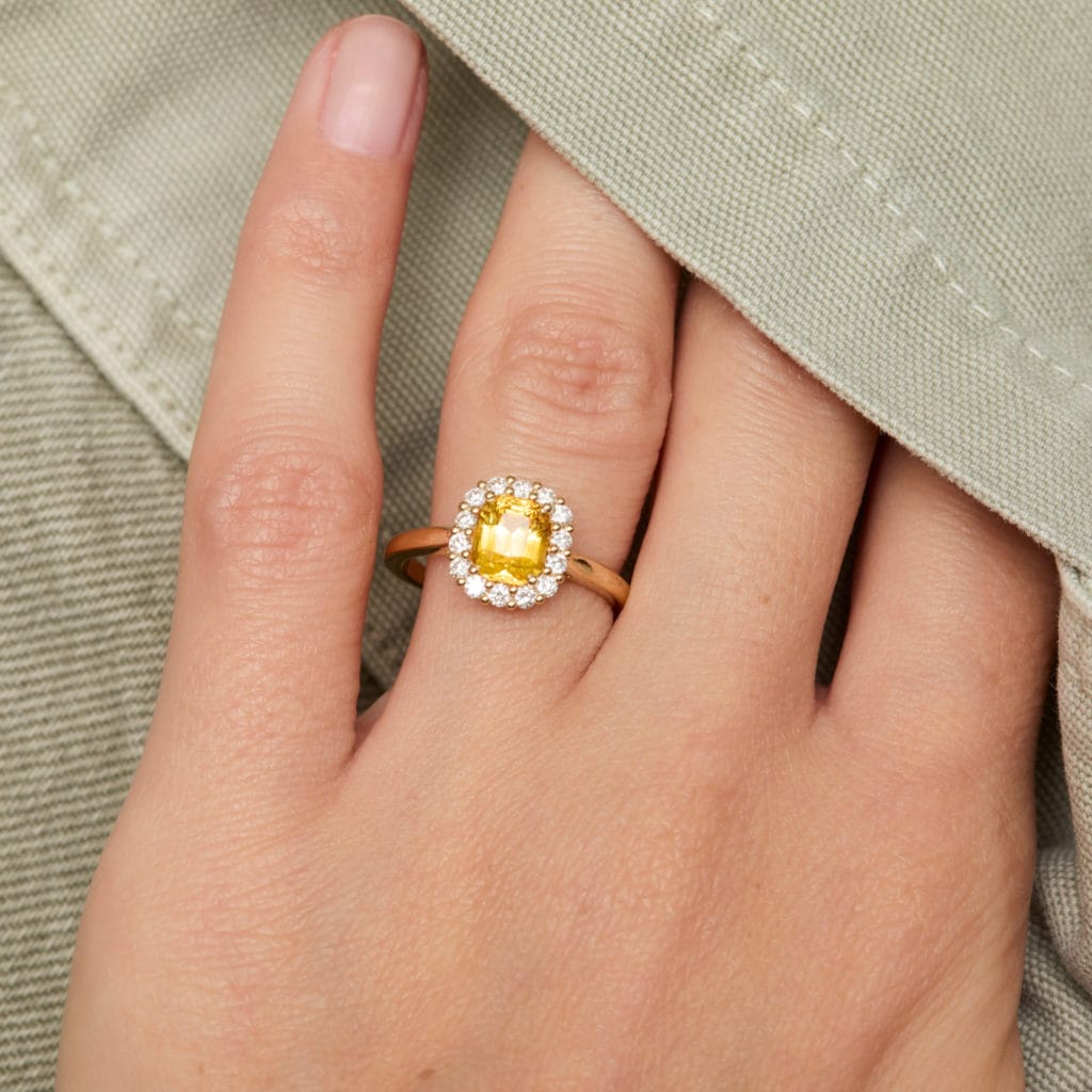 Le saphir jaune est associé à la joie et à la sincérité. Infusé de lumière, le saphir jaune révèle des nuances d’un jaune doux à des teintes or plus soutenues. Incandescente gemme, le saphir jaune se fait sensuel ou solaire pour devenir le reflet de votre féminité.