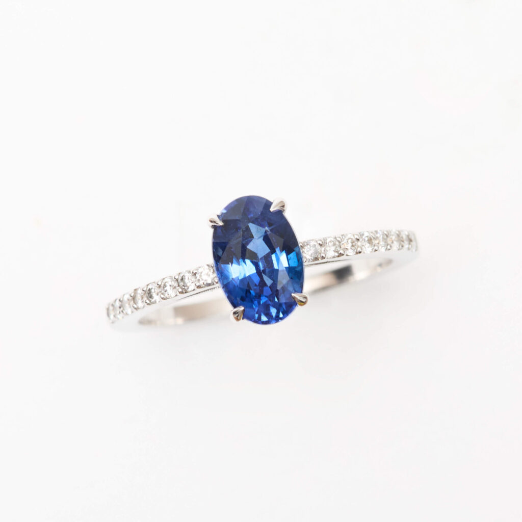 En effet le saphir Vivid Blue, par sa couleur, symbolise la finesse et la pureté. Le diamant vient réconcilier les âmes et l’or blanc apporte de l’élégance à cet amour.