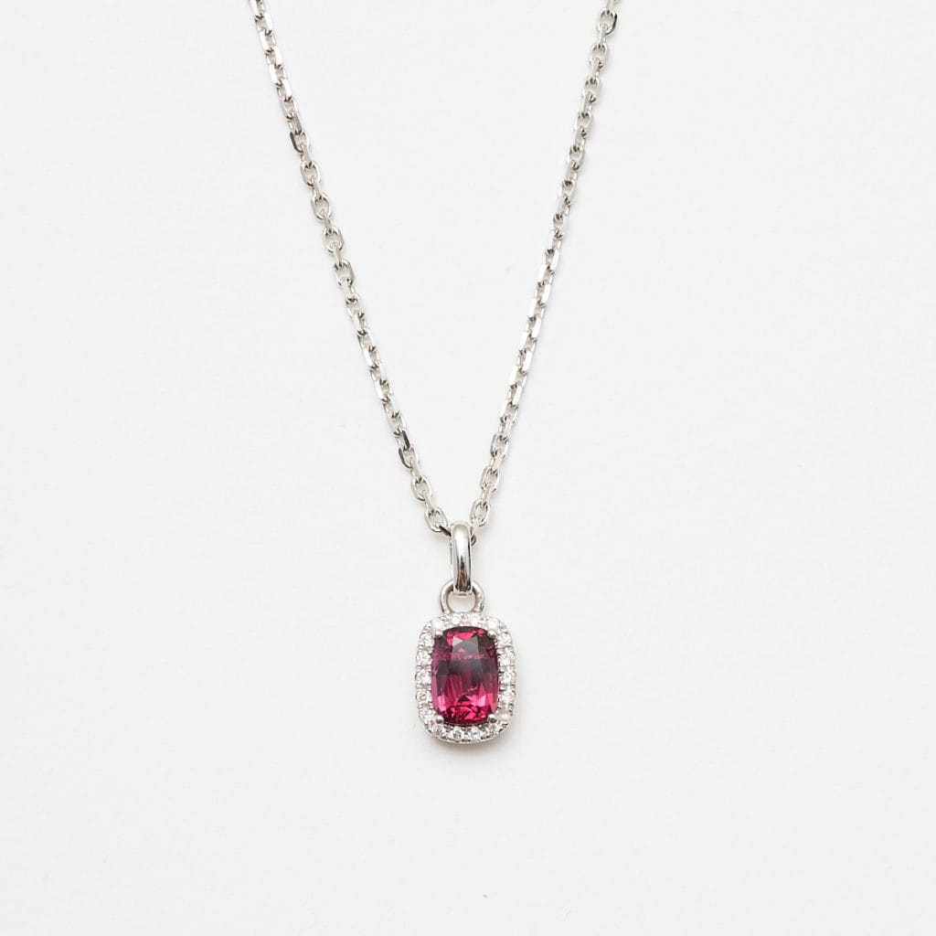 Ce collier en or blanc incarne une élégance unique, sublimée par un rubis, pierre rouge emblématique de la joaillerie française. Sa forme ovale ajoute une touche de grâce, renforçant le caractère mythique et vibrant de ce bijou d’exception.