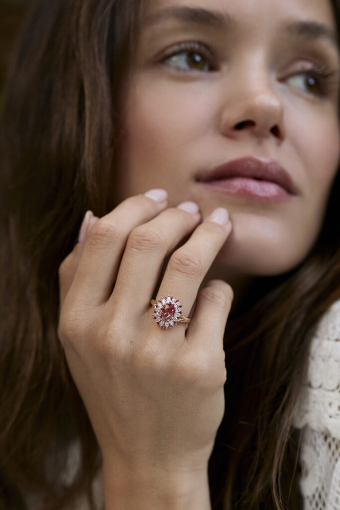 Le Padparadscha, variété de saphir la plus rare, se distingue par ses nuances uniques de rose et d’orange rappelant un coucher de soleil. Avani sublime cette pierre d’exception à travers des créations lumineuses et chaleureuses, révélant une beauté singulière.